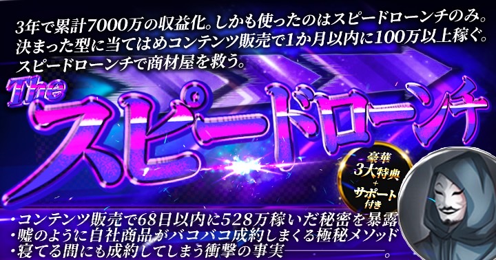 スピードローンチで ただ、一つだけ言えることは総額50億円以上を ですので破壊力が違いますし、 僕はコンテンツ販売で100万を切ったことは一度もありませんし |