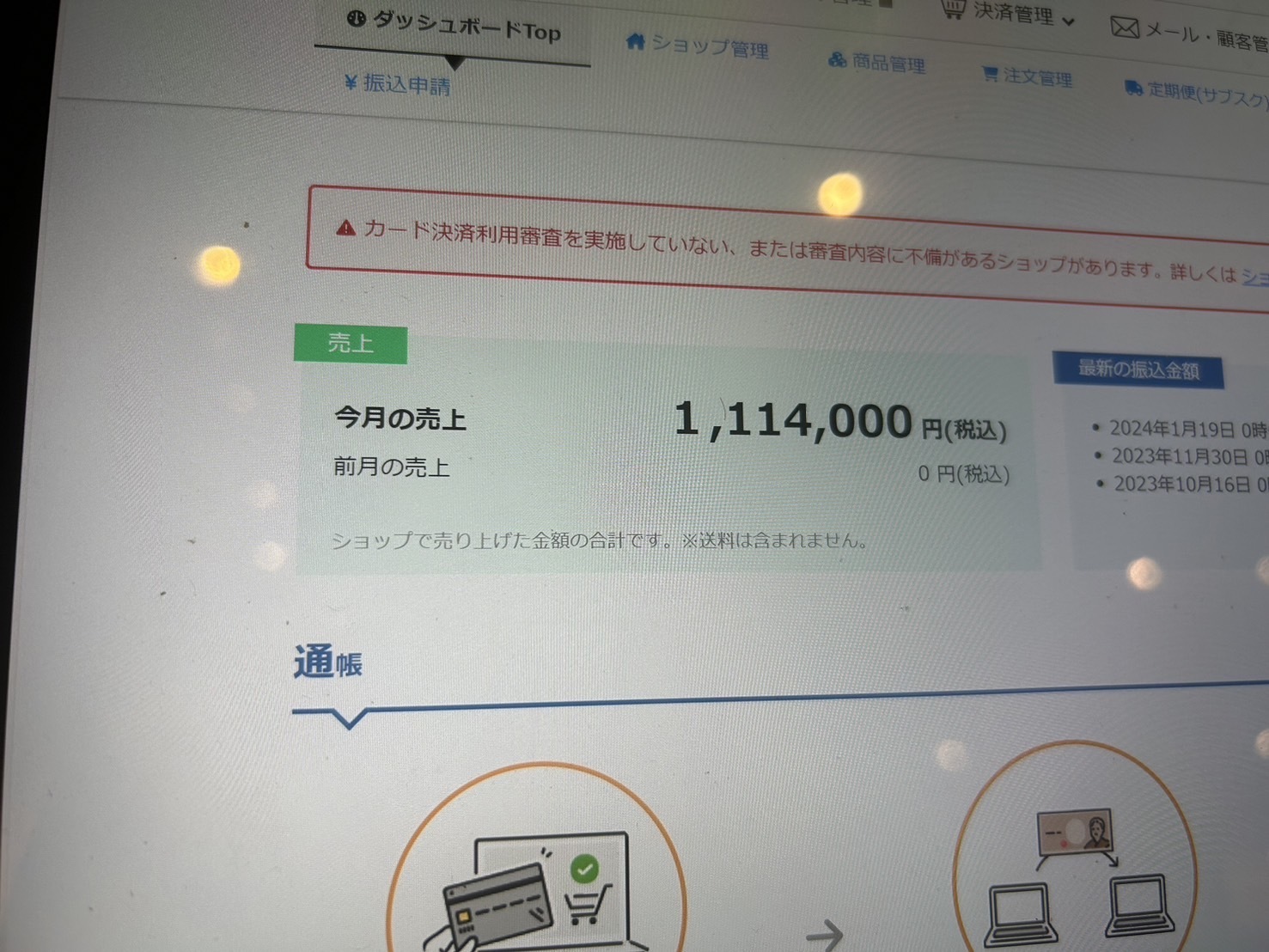 商品販売をしたら26日で168万の売上がでました